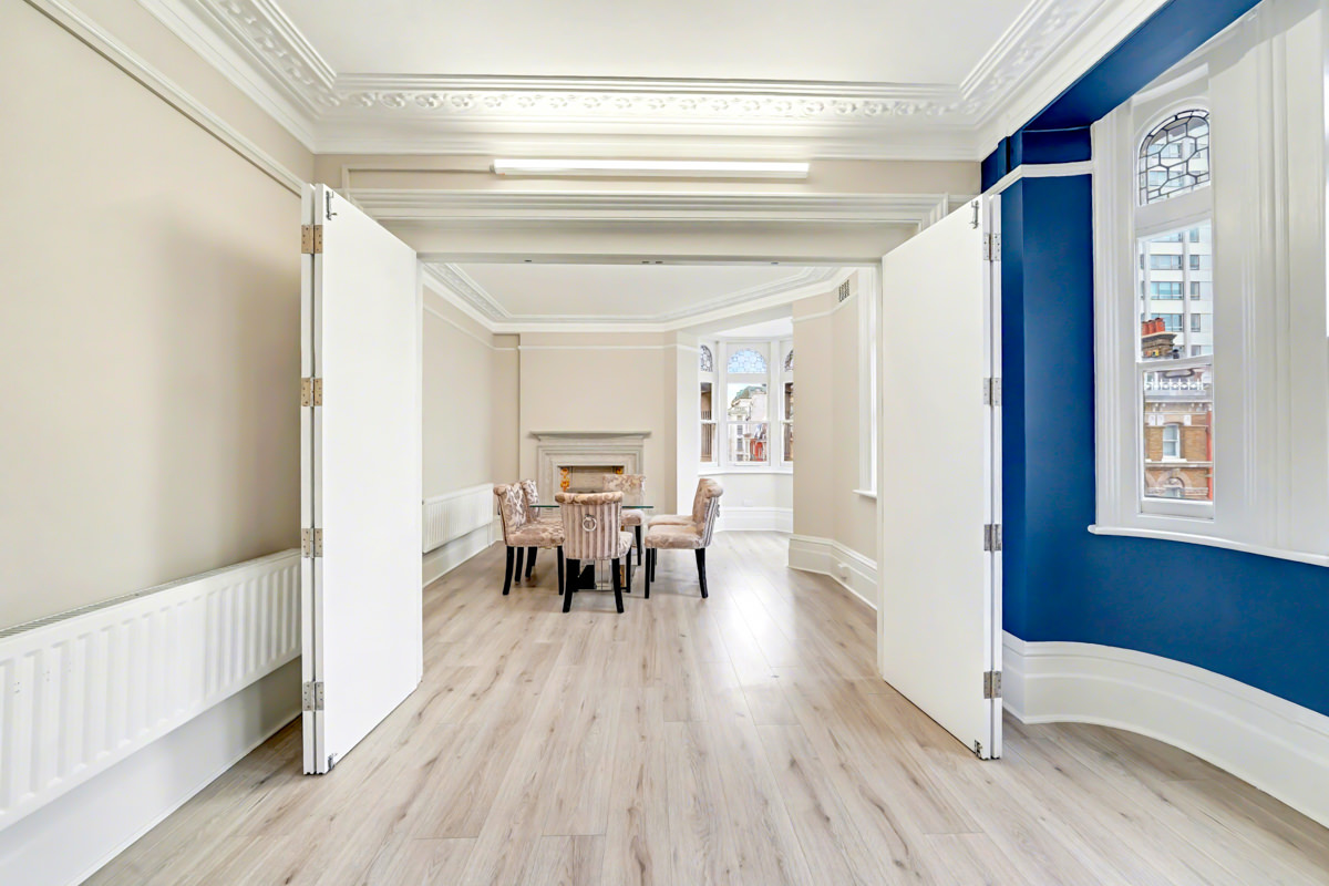 This spacious mansion flat offers three large double bedrooms. Bright and airy living/dining room. Brand-new fitted kitchen with modern appliances. Contemporary bathroom and en-suite shower room.