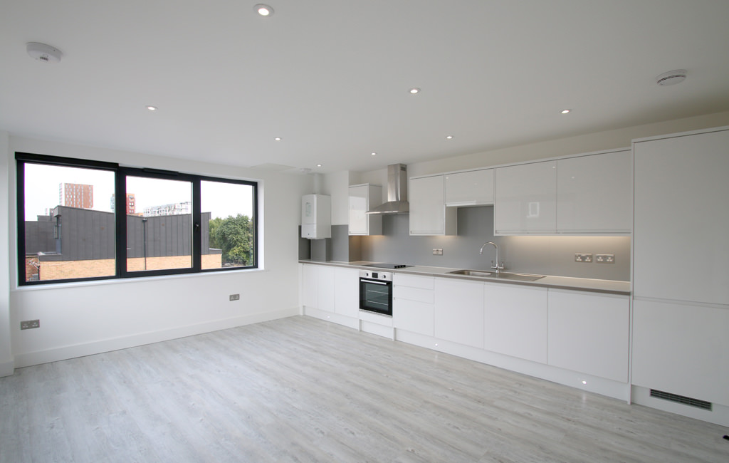 This bright and spacious apartment sits on the top floor of our former factory conversion on the cobbled Glebe Road finished to an exceptional standard and features wall to wall sound resistant windows, open plan living space with fully equipped gloss kitchens, large double bedroom and stylish bathrooms. The property has the added benefit of gas central heating and video entry phone system.